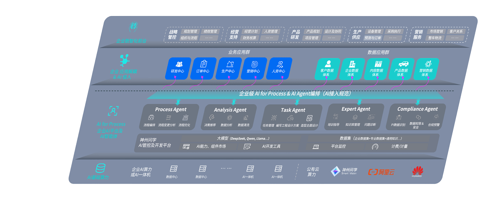 端到端的一站式AI工作空间深度融合了从企业战略规划到日常经营的全流程业务板块,,定向解决车企内部领域多、、、部门多、、、链条长、、场景碎片化等难题,,,,支持车企快速构建以AI为核心的生产力写作体系,,,,实现任务执行与AI能力的无缝集成与交互